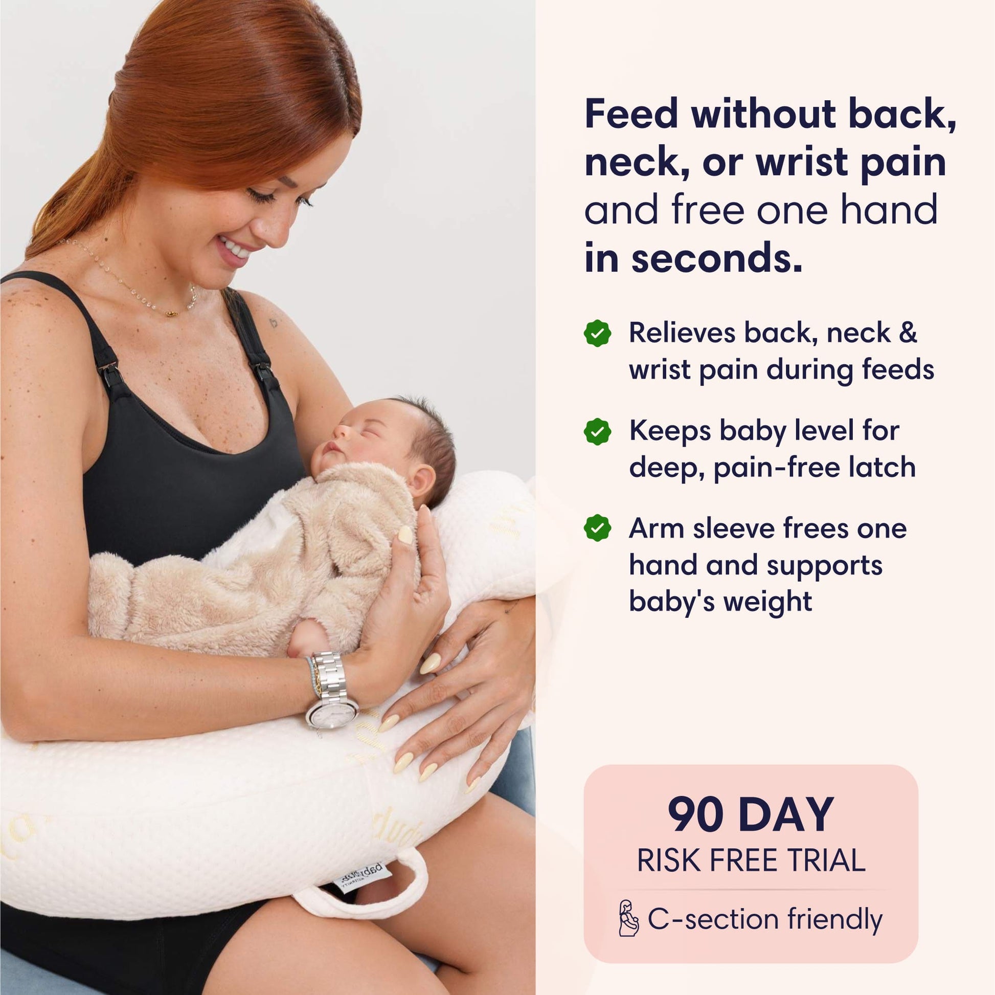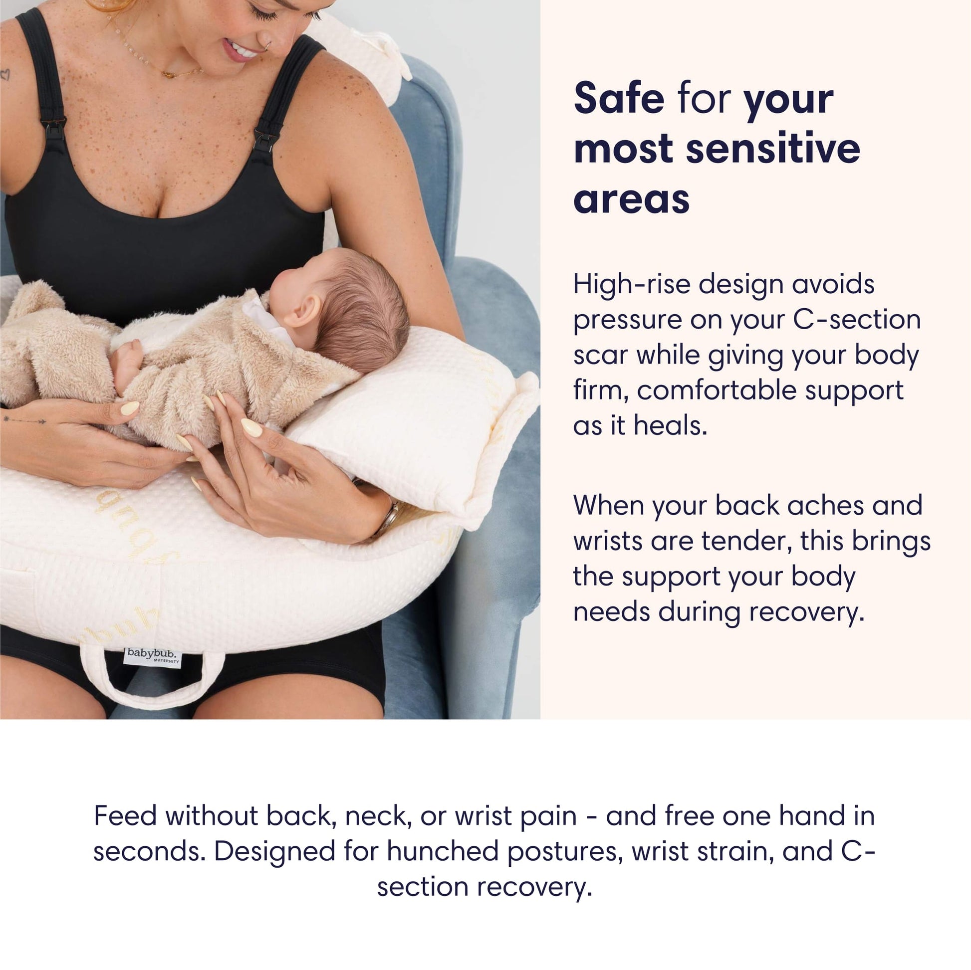When your back screams and your wrists throb, this doesn't add to the pain. The only nursing pillow you can use pain-free while recovering from childbirth.